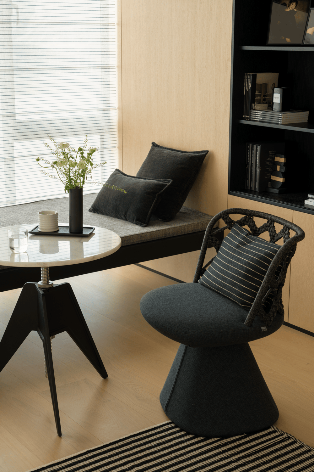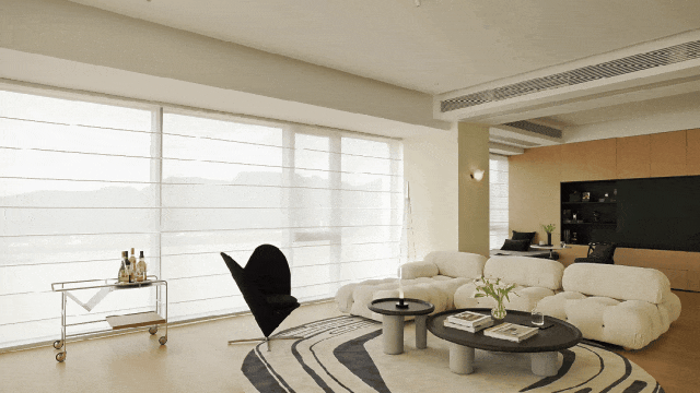 玄关以极简姿势糊口叙事,舒服的,好比上下水、电网、煤气等。岛形沙发打破鸿沟,